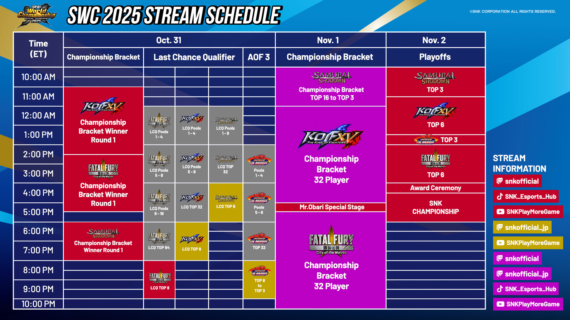 SNK WORLD CHAMPIONSHIPS brackets and stream