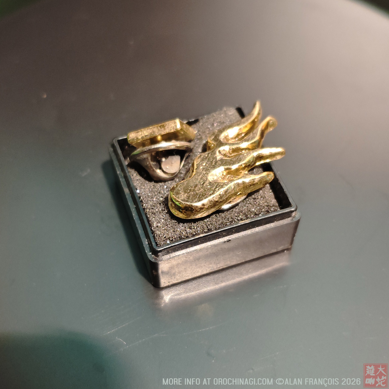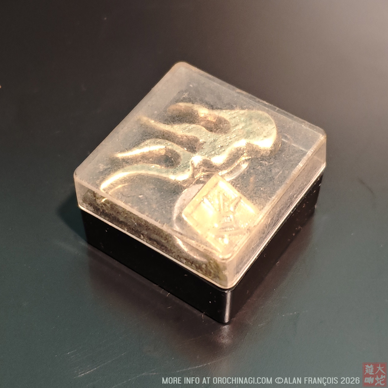 It certainly looks like gold bullion but you may be able to guess that at the cost of 1000 yen, it was hardly much (2026), although for a schoolkid trying to cosplay as the scion of flame, it might have been relatively expensive.