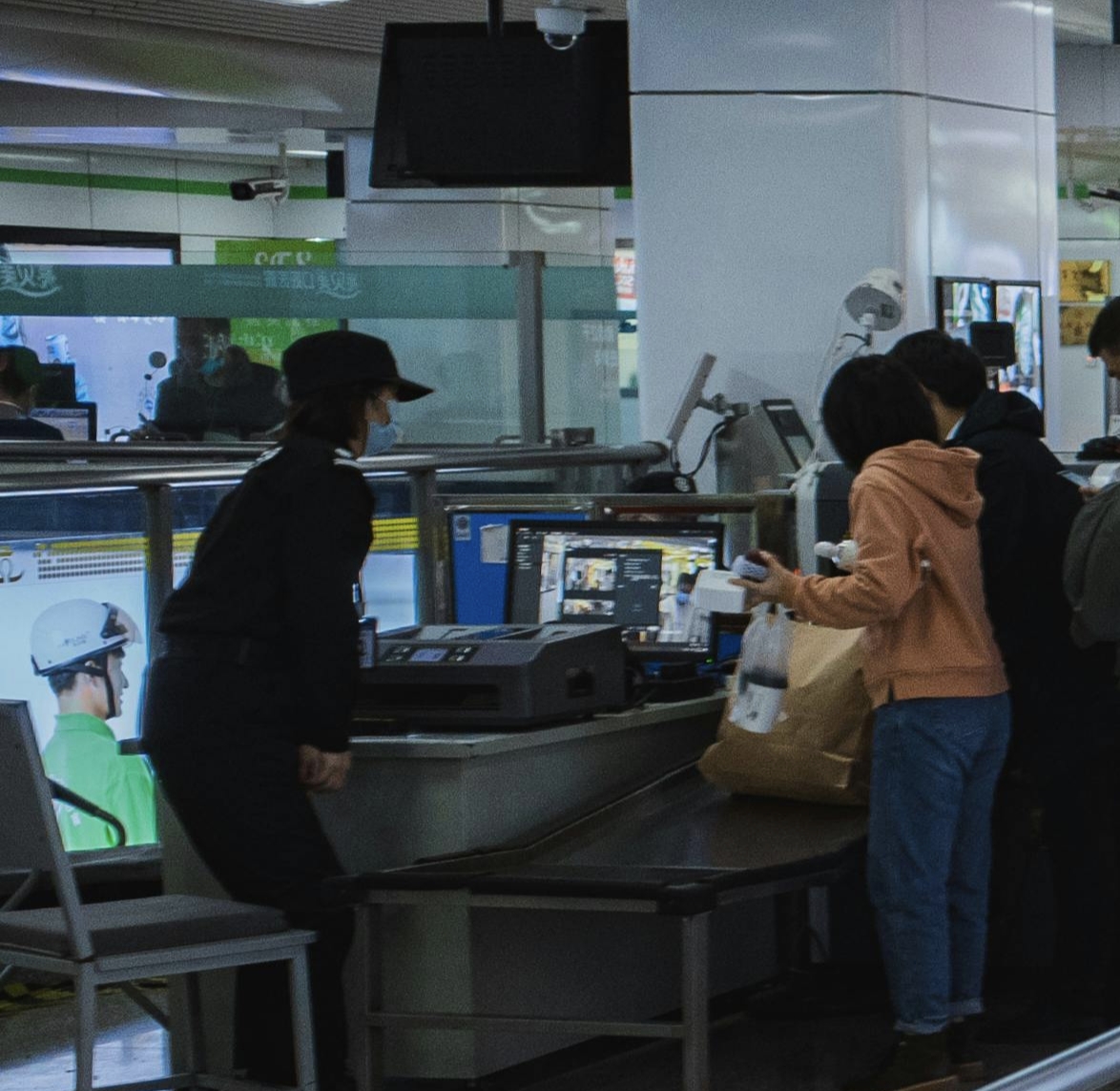 empty, take off, put / put on, place, electronic, tray, pockets, coins, keys, metal objects, belt, hat, shoes, jackets and coats